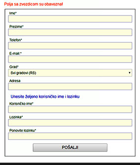 i otvoriće se strana sa formularom za registraciju, koji trebate da popunite vašim podacima.