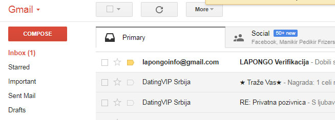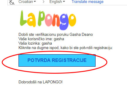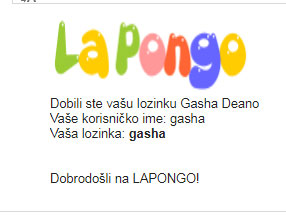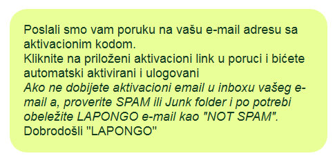 Otvorite vaš email i proverite da li vam je stigla poruka sa sajta "LAPONGO"